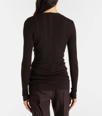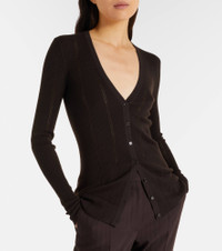 The Lillian cardigan from Gabriela Hearst will serve you for seasons to come. The style is finely rib-knitted from pure wool, featuring a fitted silhouette with a deep V-neckline. Product Details - Material: 100% wool - Care instructions: dry clean - Made in China - Designer color name: Chocolate - Item color: brown - Collar: V-neck - Sleeves: long-sleeved - Closure: buttoned front - Item number: P01085880 Size & Fit - True to size - Semi-sheer - Fitted - Stretchy fabric - Falls to the hip - The model seen in the picture is 178cm-5'10" and wearing a size XS