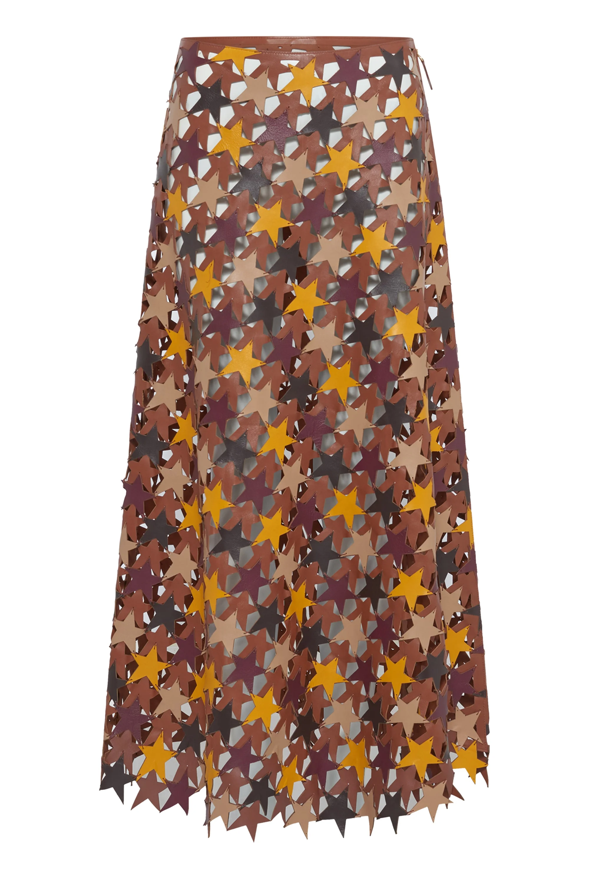 Lirael Patchwork Stars Midi Skirt in Multi Nappa Leather