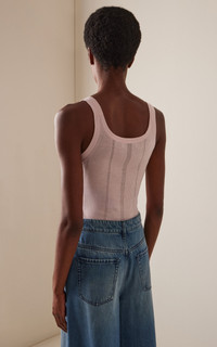 The sustainability pioneer is the industry leader in luxurious clothing and accessories that strike an understated elegance, yet are crafted with the utmost attention-to-detail and commitment to ethics. The 'Lucy' is a classic scoop-neck tank made from pointelle-knit wool. Try it layered under the Lillian cardigan. PRODUCT DETAILS - Resort '26 - Slip on - Composition: 100% wool - Designer color: Blush - Dry clean - Made in Switzerland