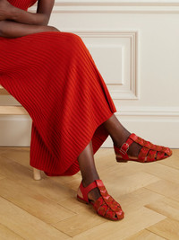 Gabriela Hearst's 'Willow' sandals are designed in a cage-like silhouette that recalls vintage styles from the '70s. They've been made in Italy from strips of tomato-red leather braided with tonal suede and have subtle wooden heels and adjustable ankle straps to customize the fit. Wear yours with anything from jeans to flowy dresses. Lower-Impact Materials. This product is made using at least 50% lower-impact materials or ingredients. Find out more about our NET SUSTAIN criteria here. Size & Fit - Fits true to size, take your normal size - Italian sizing Details & Care - Slight heel - Tomato-red leather, camel suede - Buckle fastening strap - By purchasing this product, you are supporting responsible leather manufacturing through Leather Working Group.