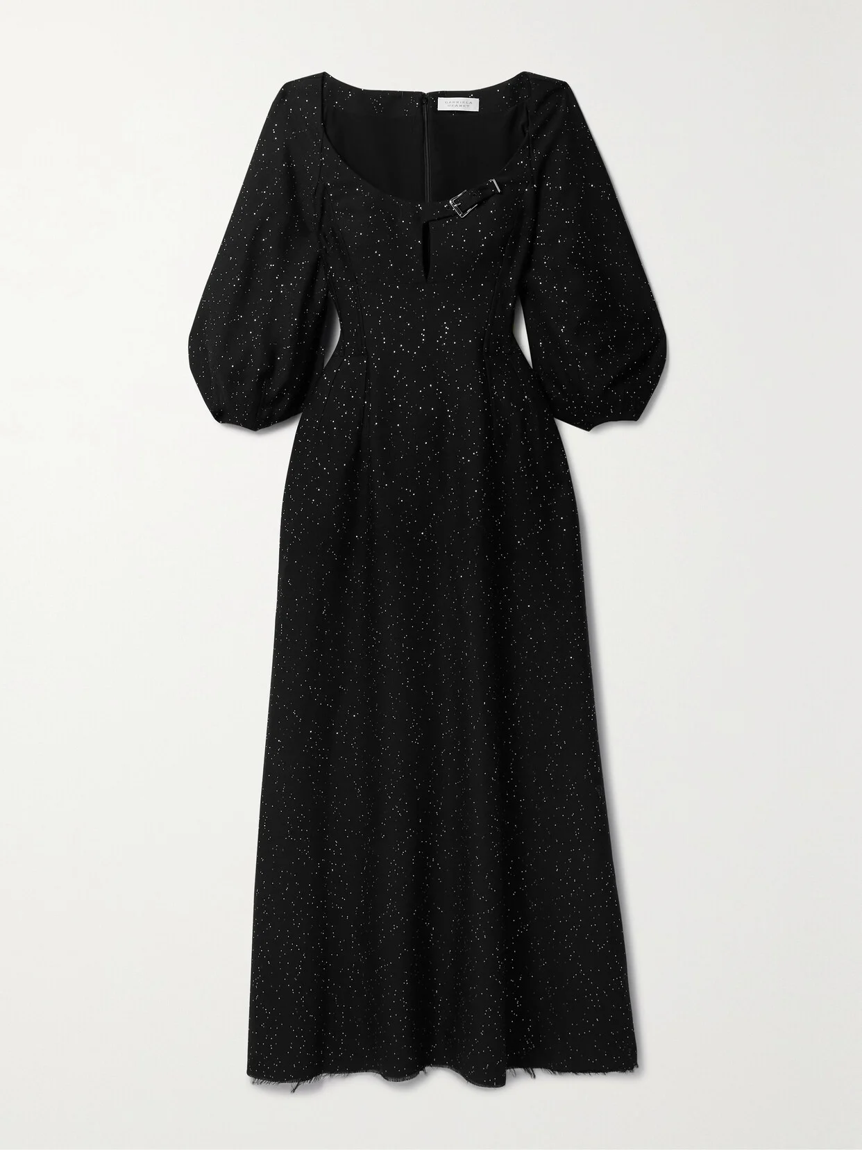 Madyn Buckled Cutout Sequin-embellished Wool-blend Maxi Dress