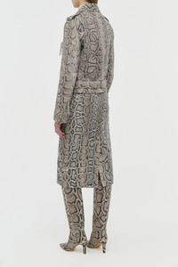 The Manuela Skirt is a timeless embodiment of the sensuous serpent—showcasing elegance and edge in Burmese python. This wild Burmese python (Python bivittatus) is sourced from the Florida Everglades, where it is a highly invasive species. Just one 20-foot python can consume up to 39 endangered animals and over 460 native species in its lifetime. With 90% of native Everglades wildlife populations under threat, the need is great for removing these predators. By doing so, this initiative helps restore ecological balance to one of the most unique ecosystems in the world. The python hides are tanned using traditional Italian techniques, resulting in a luxurious and smooth snakeskin hand-feel. This purpose-driven harvesting of exotic leathers provides a meaningful, sustainable alternative in luxury leather production. Details: - 100% Python Bivivatutus Leather (Wild), Everglades, Florida. - High-rise - Midi-length - Slim fit - Pencil style - Zipped back closure - Made in Italy