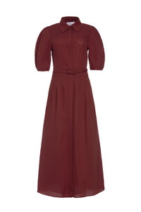 The Maude dress is complete with sculpted 3/4 length sleeves that contrast against a fitted bodice with top stitch boning detail and full skirt. Finished with a self-belt and buckle. Details: - 100% Linen - Point Collar - Detachable self-belt - 3/4 puff-sleeves - Stitch-boning detail - Back-zip closure - Fitted Bodice - Made in Italy Size and Fit: Fits true to size. The model is 5'11" and wearing a size 40.