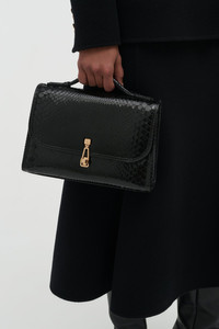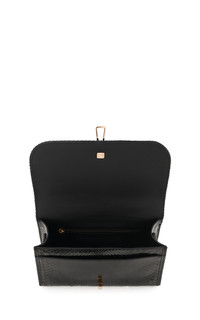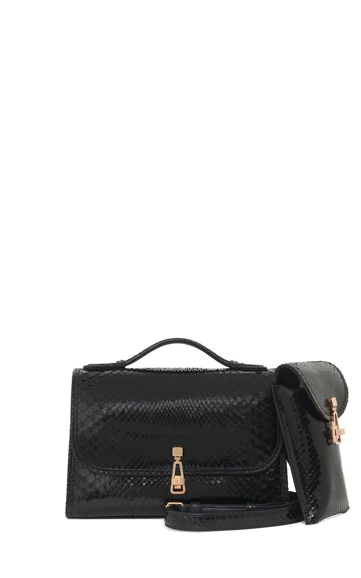 Medium Leonora Flap Bag in Black Snakeskin with Sunglasses Pouch