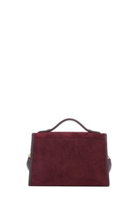 The Medium Leonora Flap Bag is a satchel style with utilitarian leather binding, top-handle, removable and tuckable cross-body strap functionality in leather. All Leonoras feature an outside open pocket, credit card slots, interior pocket and back pocket slip. Details: - 100% Goat suede exterior - 100% Nappa leather interior - Sunglass pouch is sold separately - Turnlock closure - Front interior pocket - Two credit card slots - Outside exterior pocket - Detachable 23.5 crossbody strap - Non-detachable top handle strap - Length: 3.5" | 89 mm - Height: 7" | 178 mm - Width: 10.5" | 267 mm - Made in Italy