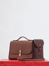 The Medium Leonora Flap Bag is a satchel style with utilitarian leather binding, top-handle, removable and tuckable cross-body strap functionality in calf leather. All Leonoras feature an outside open pocket, credit card slots, interior pocket and back pocket slip. Details: - 100% Calf leather exterior - 100% Nappa leather interior - Sunglass pouch is sold separately - Turnlock closure - Front interior pocket - Two credit card slots - Outside exterior pocket - Detachable 23.5 crossbody strap - Non-detachable top handle strap - Length: 3.5" | 89 mm - Height: 7" | 178 mm - Width: 10.5" | 267 mm - Made in Italy
