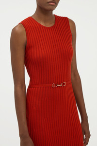 This dress, knitted from cashmere merino wool, showcases a classic ribbed detail and includes our signature Gabriela Hearst detachable horsebit self belt. Details: - 90% Merino Wool - 10% Cashmere - Ribbed - Detachable self-belt - Midi-length - Crew-neck - Dry Clean Size and Fit: Fits true to size. The model is 5'11" and wearing a size Small.