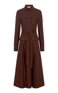 Meyer Pleated Maxi Shirtdress in Burnt Sienna Wool Cashmere Flannel