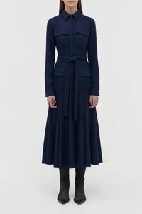 Meyer Pleated Maxi Shirtdress in Navy Wool Cashmere Flannel