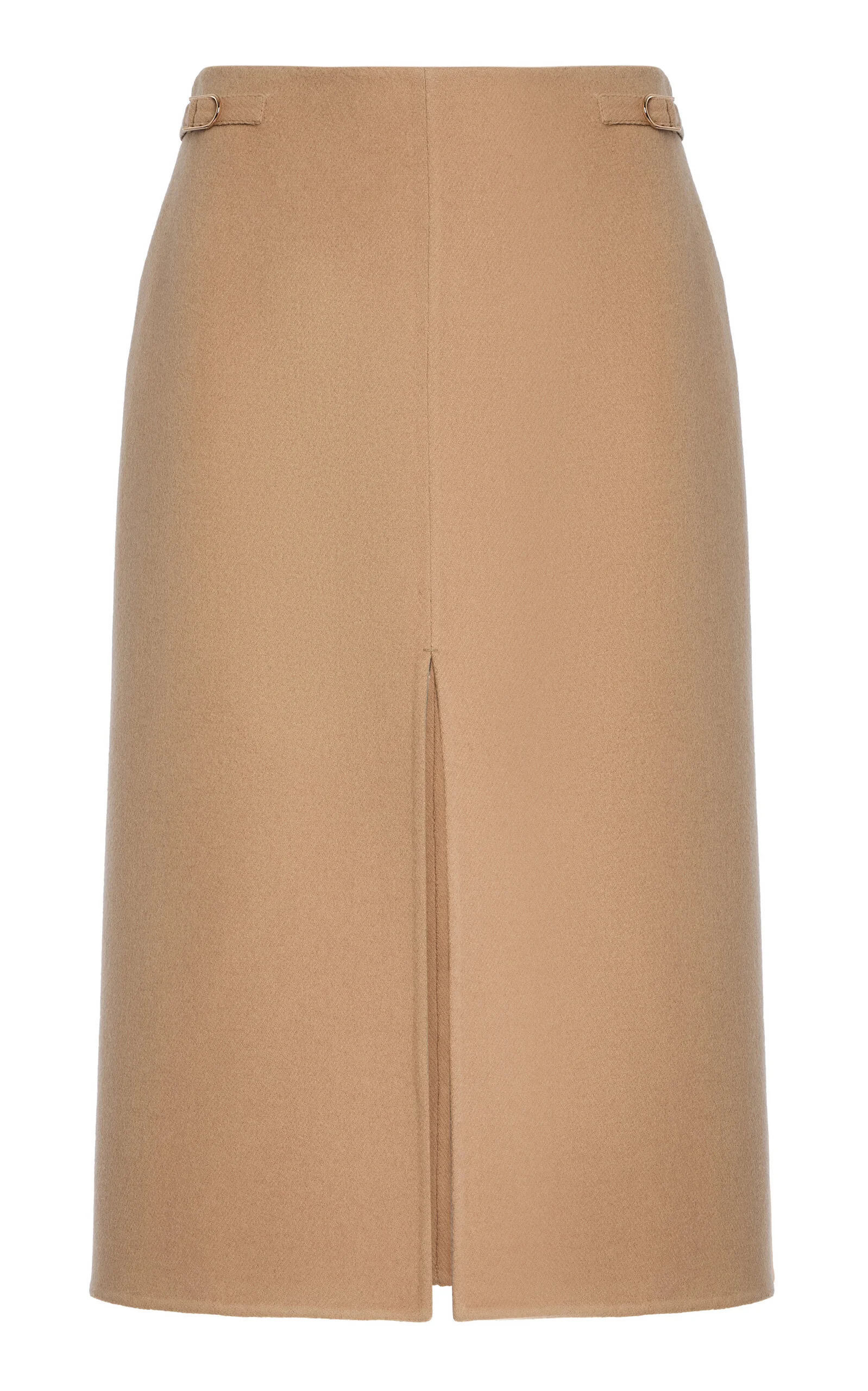 The sustainability pioneer is the industry leader in luxurious clothing and accessories that strike an understated elegance, yet are crafted with the utmost attention-to-detail and commitment to ethics. The lean silhouette of the Morelos pencil skirt in recycled cashmere is finished with a front-slit detail and double-face finishing. This clean, flattering style is punctuated with signature GH slider details at each side of the waistline. PRODUCT DETAILS - Resort '26 - Zip fastening at back - Composition: 100% cashmere - Designer color: Camel - Dry clean - Made in Italy SIZE & FIT - Our model is wearing a size IT 38 - Model is 5'10" with a 31" bust, 23.5" waist, and 33.5" hip