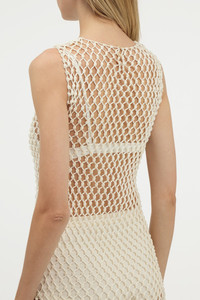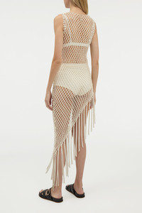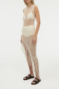 Nabia L Fringe Macrame Maxi Dress in Ivory Silk