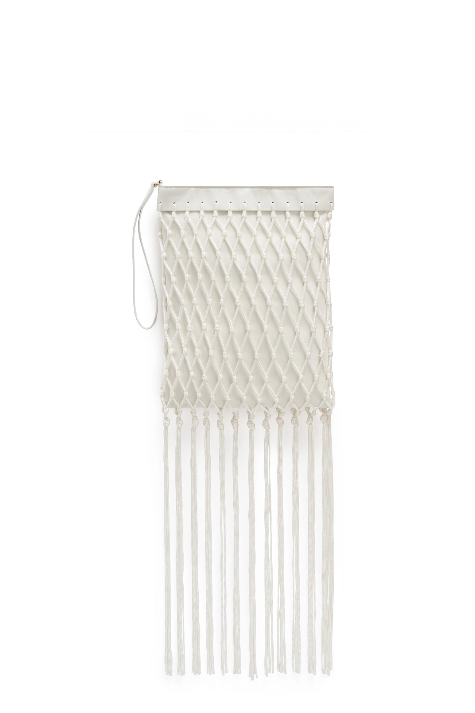 Naila Fringe Pouch in Ivory Nappa Leather & Silk Macrame