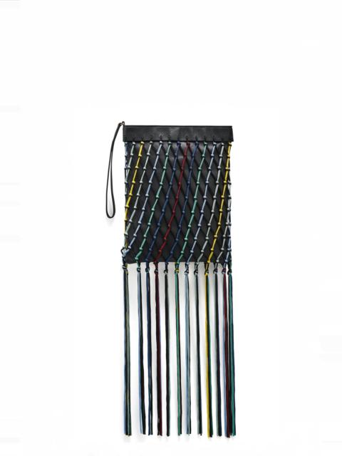 A playful take on structure and movement, this pouch features a woven grid of multicolored cords and dramatic fringe detailing. Finished with a slim leather wrist strap for easy carry. Details: - 100% Silk In the interest of maintaining our brand values of sustainability, the Naila Fringe Pouch in Ivory Nappa Leather & Silk Macrame is produced in limited quantities and is available by special order only. To order your bag, please complete the following form and click the “Inquire” button. You will be notified when your item becomes available. For any inquiries please contact us at customercare@gabrielahearst.com or call +1 212 966 2484 Monday through Friday, 9:00 AM to 6:00 PM EST