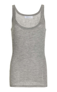 Nevin Pointelle Tank in Heather Grey Silk Cashmere