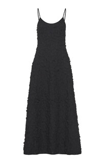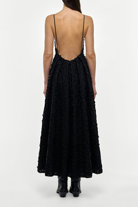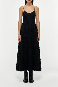 Nexus Embroidered Leaves Maxi Dress in Black Linen