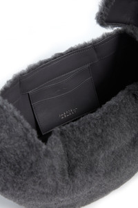 The original handbag in the Gabriela Hearst collection, the Nina Bag is named for artist and activist Nina Simone. A structured top handle with a distinctive round pouch that gently unfolds from a turnlock closure, the Nina is crafted from virgin wool silk cashmere shearling and smooth Italian Nappa leather. In the interest of maintaining our brand values of sustainability, the Nina Bag in Dark Grey Virgin Wool Silk Cashmere Fur is produced in limited quantities and is available by special order only. To order your bag, please complete the following form and click the “Inquire” button. You will be notified when your item becomes available. For any inquiries please contact us at customercare@gabrielahearst.com or call +1 212 966 2484 Monday through Friday, 9:00 AM to 6:00 PM EST Details: - Virgin wool silk cashmere fur exterior - Nappa leather interior - Single interior pocket - Height: 6” - Width: 9” - Depth: 7” - Handle height: 7” - Made in Italy