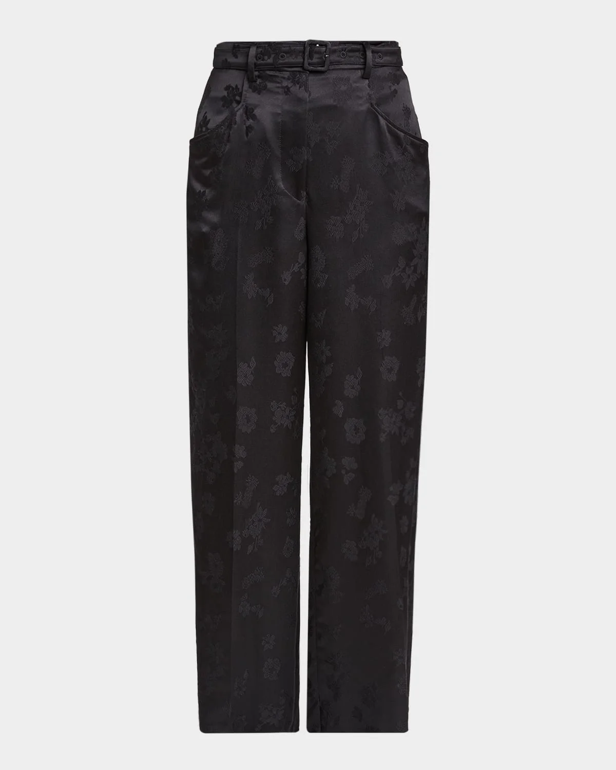 Norman Floral Satin Jacquard Wide-Leg Pants With Belt