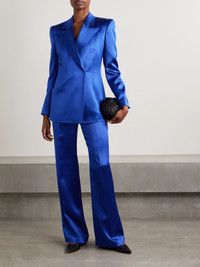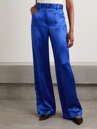 Gabriela Hearst's 'Norman' pants are chic and sophisticated. Made from cobalt-blue silk-satin, they have a high waist threaded with a coordinating belt and are neatly pressed through the straight legs for an elongating effect. Wear yours with the matching 'Aleah' blazer. Lower-Impact Materials. This product is made using at least 50% lower-impact materials or ingredients. Find out more about our NET SUSTAIN criteria here. Size & Fit - Fits true to size, take your normal size - High-rise, designed for a straight-leg fit - Mid-weight, non-stretchy fabric - Model is 180cm/ 5’11” and is wearing an IT 40 Model measurements: - Bust: 80cm/ 31.5" - Waist: 70cm/ 27.5" - Hip: 93cm/ 36.5" Details & Care - Cobalt-blue silk-satin - Concealed button, hook and zip fastening at front - 100% silk - Dry clean