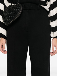 Norman trousers Highlights - Black - Cashmere - Knitted construction - Brushed effect - Concealed front button, hook and zip fastening - High waist - Belt loops - Detachable and adjustable waist belt - Two rounded pockets to the sides - Pressed crease - Dart detailing to the rear - Two rear jetted pockets - Straight leg Made in Italy Composition Outer: Cashmere 100% Lining: Cupro 100% SIZE & FIT Model measurements Height 5 ft 9 in(1.75 m) Bust/Chest 31.88 in(81 cm) Hips 34.64 in(88 cm) Waist 24.01 in(61 cm) FittingInformation Designed with a wide-leg cut, these trousers allow for a close fit at the waist and offer a loose and roomy fit over the leg The belt offers adjustability for fitted preferences Made from a midweight non-stretch fabric