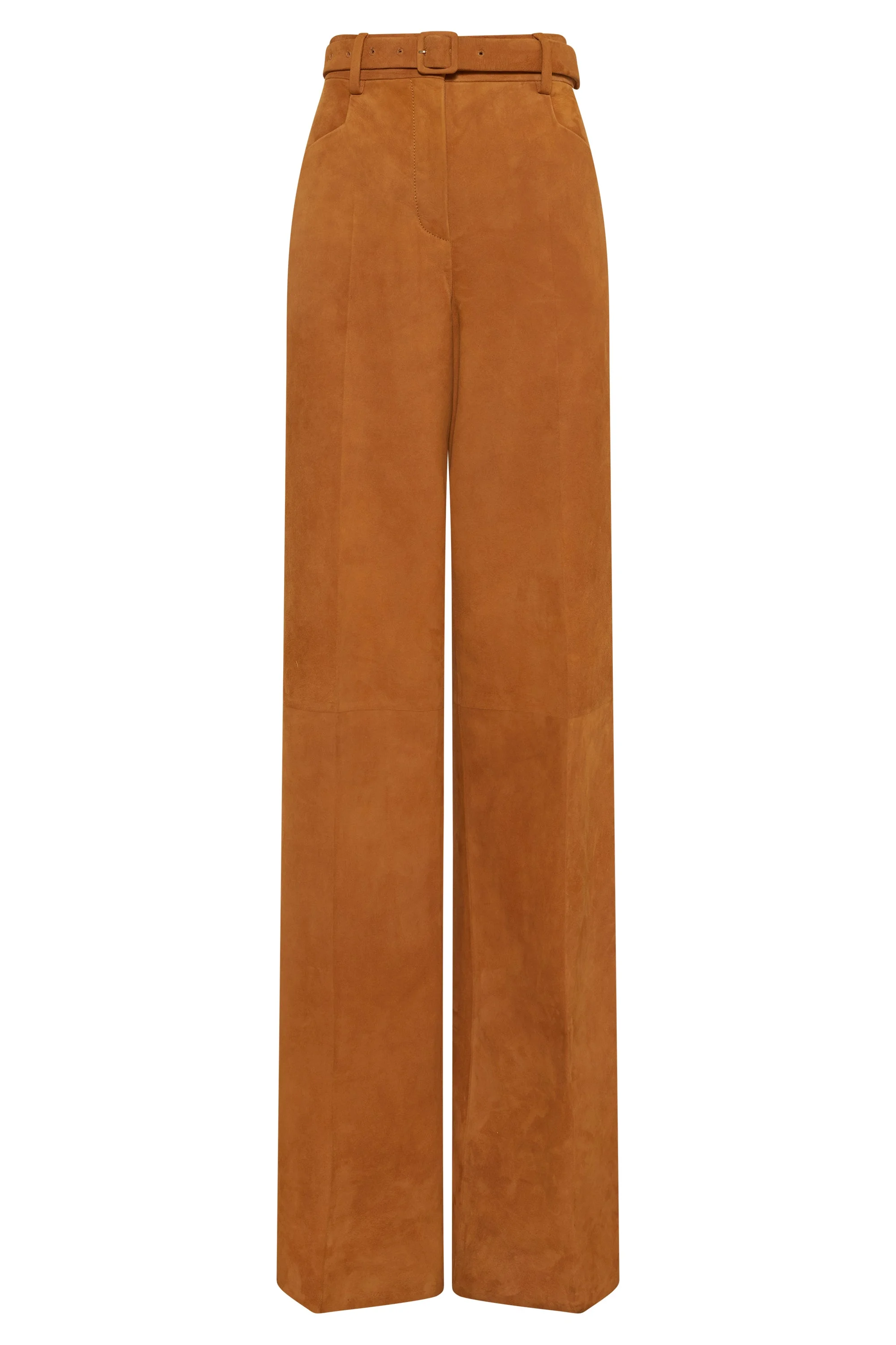 The Norman Trousers draw symbolic meaning from La Maison Dieu, the Sixteenth Triumph of the Major Arcana of the Tarot de Marseille. Crafted in supple goat suede, the high-waist silhouette features invisible bonded seams and wide legs. Details: - 100% Goat Suede - Made in Italy