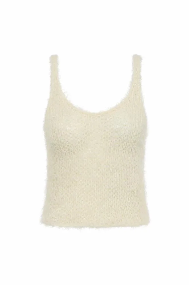 The Nur tank is knit in fuzzy silk cashmere with open drop needle stitches. Details: - 58% Silk, 42% Cashmere - Sleeveless - Made in Italy