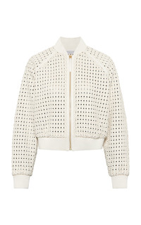 The intricate hand-woven white nappa leather of the Odin Bomber Jacket reimagines an easy jacket silhouette—elevated with a sense of rawness. Designed to pair seamlessly with the Bennie skirt, the Odin features a full zip closure, ribbed cuffs and our signature rosegold hardware Details: - 100% Lambskin Leather - Ribbed Knit Collar - Ribbed Hem - Ribbed Cuffs - Signature Rose gold hardware - Full zip closure - Fully Lined for structure - Made in Italy