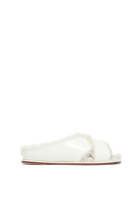 Gabriela Hearst reimagines its Ellington slides in smooth leather with soft faux fur crafted from blended wool and silk for the new season and the result feels considered and elegant. They're made a crossover silhouette leading to a partially covered heel for a contemporary, yet classic feel. Details: - Heel height 20mm - 100% Calf upper / Wool silk lining - Made in Italy - Product Details Size and Fit: Fits true to size.