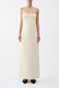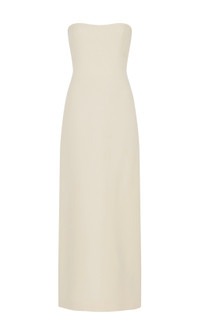 The Opus dress offers an ideal solution for those seeking a structured, strapless, corseted, fitted style that can make a statement on its own. Featuring an inner corset structure to enhance the figure, it is complemented by a sleek pencil skirt silhouette to complete the ensemble Details: - 77% Wool 23% Silk - Strapless silhouette - Built-in Corset - Structured - Fitted - Maxi length - Made in Italy