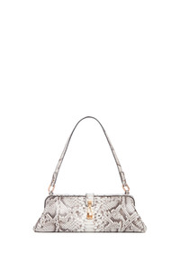 Sourced from Inversa™ Python Skin, this structured baguette silhouette is refined by soft curves and a distinctive metal clasp. Designed for versatility, it can be carried by hand or worn over the shoulder. The Paola in Inversa™ Python Skin. Details: - 100% Inversa™ Pythonskin - 100% Lamb leather Lining - Height: 4.5'' - Length: 13'' - Width: 5'' - Structured top with turnlock closure - Removable shoulder strap with internal hooks - Can be worn as a clutch or shoulder bag - One compartment - One internal slip pocket - Fits an iPhone - Made in Italy
