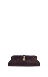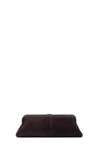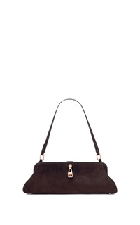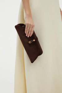 Crafted in suede, this structured baguette silhouette is refined by soft curves and a distinctive metal clasp. Designed for versatility, it can be carried by hand or worn over the shoulder. Details: - 100% Leather - Height: 4.5'' - Length: 13'' - Width: 5'' - Structured top with turnlock closure - Removable shoulder strap with internal hooks - Can be worn as a clutch or shoulder bag - One compartment - One internal slip pocket - Fits an iPhone - Made in Italy In the interest of maintaining our brand values of sustainability, the Paola Clutch in Dark Brown Suede is produced in limited quantities and is available by special order only. To order your bag, please complete the following form and click the “Inquire” button. You will be notified when your item becomes available. For any inquiries please contact us at customercare@gabrielahearst.com or call +1 212 966 2484 Monday through Friday, 9:00 AM to 6:00 PM EST