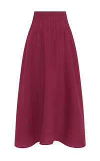 Penelope Midi Skirt in Raspberry Aloe Linen