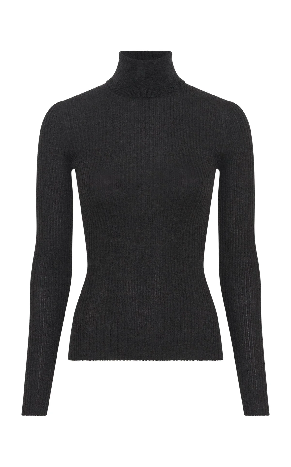 Peppe Knit Turtleneck in Charcoal Cashmere Silk