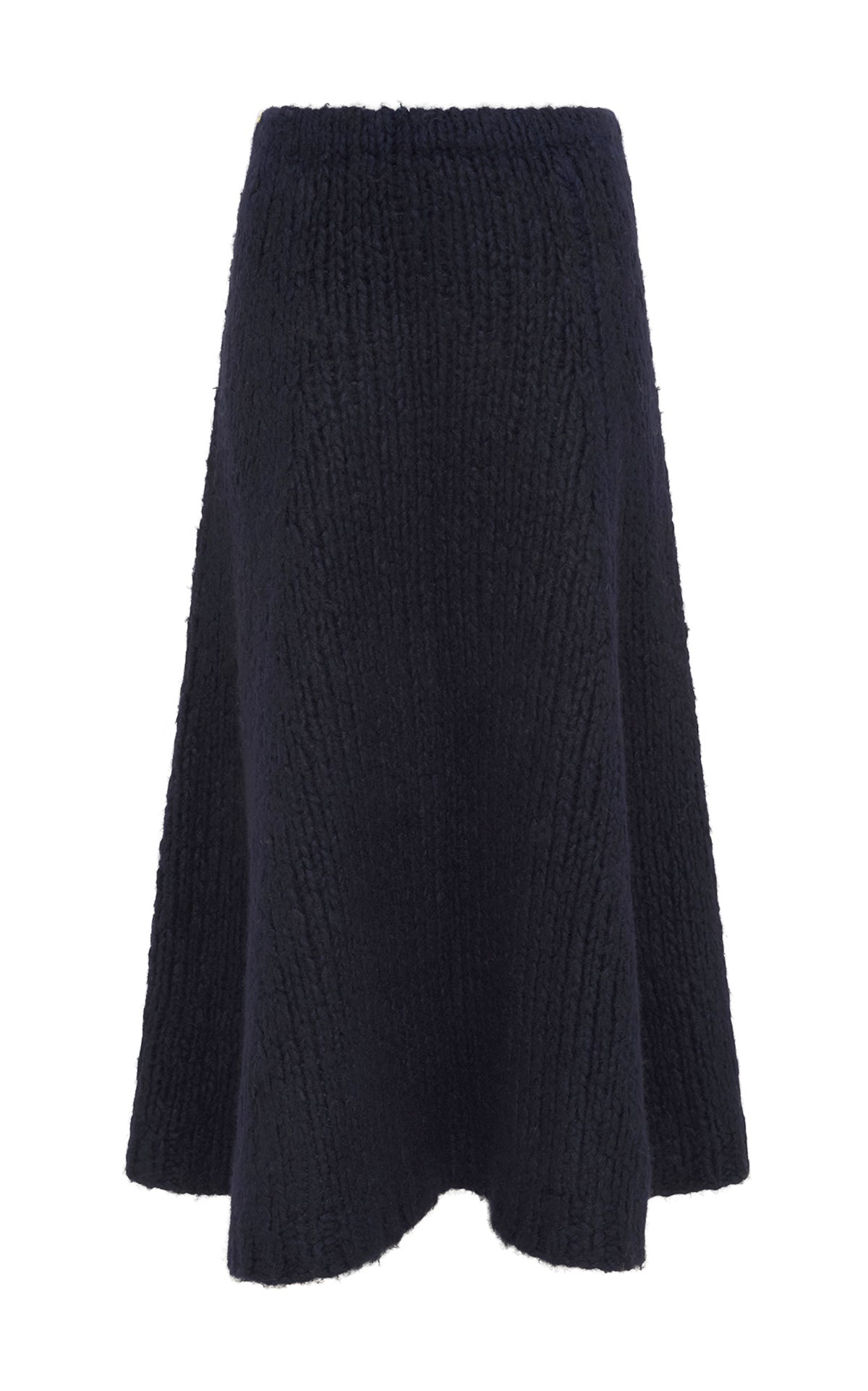 The Perses skirt is knit in our softest cashmere and handknit in Uruguay. It fits slim on the hips, then flares for dramatic effect. It is designed as continuation of the Pallas sweater and made to be worn together. Details: - 100% Cashmere - A-line silhouette - Midi-length - International sizing - Made in Uruguay Size and Fit: Relaxed fit. Fits true to size. Model is 5'11" and wearing a size S.