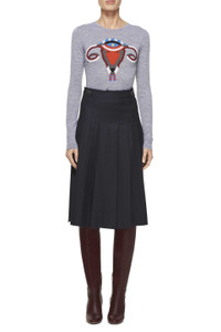 "The Ram-Ovaries sweater is a limited-edition 100% Merino wool sweater with the profits benefiting Planned Parenthood. The sweater features a drawing by Hearst initially developed for her International Woolmark Prize collection inspired by the meeting of two symbols of strength: the female reproductive system and ram’s horns. “The Ram-Ovaries sweater for me symbolizes female strength in a time of uncertainty" says Hearst. "Women's health is under attack by the current administration and it is an affront to our gender." Gabriela wore the prototype of her Ram-Ovaries sweater to show support for the Women’s March on January 21 in Washington, D.C. as it took place on the same day as the International Woolmark Prize finals in Paris. "Planned Parenthood is a trusted educator on all aspects of women’s health. Having lost close family members to breast cancer, I believe the only way to fight it is to be educated and our country needs a strong Planned Parenthood." Details: - 100% Merino Wool. Italian Yarns. Dry Clean. Size and Fit: Model is Wearing a Size Small.