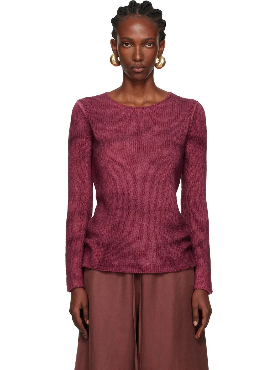Knit cashmere sweater. · Pattern throughout · Crewneck Supplier color: Bordeaux 100% cashmere. Made in Italy 252854F096000