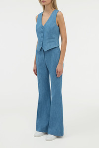 Rhein Flare Pant in Medium Blue Recycled Cotton Linen Denim