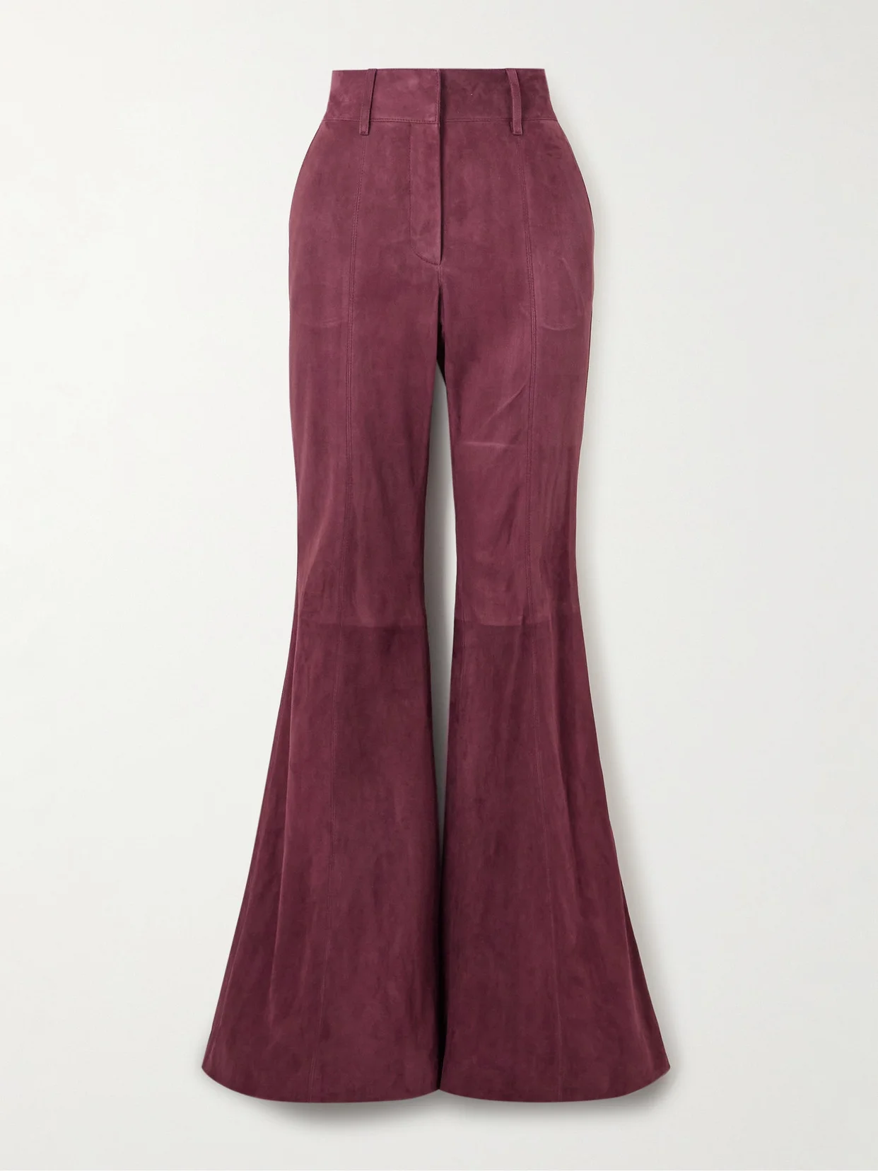 Gabriela Hearst's 'Rhein' pants are cut from burgundy suede and lined with silk, so they feel luxurious inside and out. Fusing modern tailoring with vintage style, they have a wide cinched waistband and slim legs that flare out from the knees. Take cues from the Spring '24 runway and pair yours with the 'Gavin' blazer.