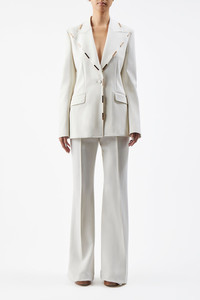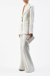 The Rhein pant creates an introduction to a new, easy silhouette- low slung and languid- that moves with the body. Seaming detail at the front and back leg, a perfectly streamlined leg that subtly flares towards the ankle. Details: - 100% Wool - Made in Italy Size and Fit: Fits true to size. Model is 5'11" and wearing a size 38.
