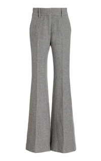 The Rhein pant creates an introduction to a new, easy silhouette- low-slung and languid in movement- Seaming detail at the front and back leg, create a perfectly streamlined leg that subtly flares towards the ankle. Details: - 50% Cashmere 50% Linen - High-waisted - Dual pockets - Back-welt pocket - Straight leg, Flared at-the-knee - Made in Italy Size and Fit: Fits true to size. Model is 5'11" and wearing a size 38.