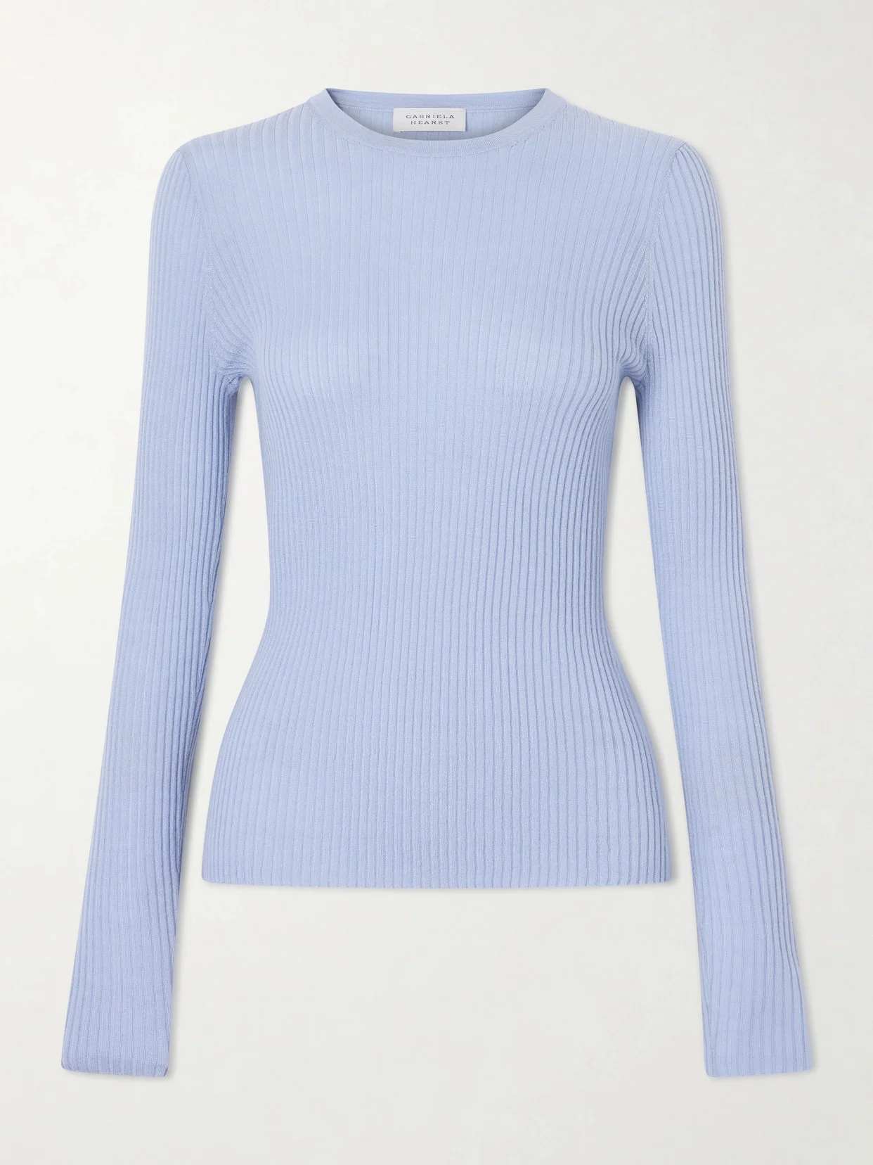 Rendered in a soft blue hue, Gabriela Hearst's ‘Browning' sweater will anchor your transitional wardrobe. Knitted from a cashmere and silk blend, it's ribbed for a close fit and framed by softly flared cuffs.