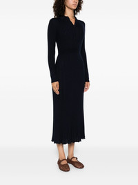 ribbed collared midi dress Highlights - Dark navy - Ribbed knit - Collared neckline - Button fastening - Long sleeves Imported Composition Silk 60%, Cashmere 40% SIZE & FIT Model measurements Height 5 ft 10 in(1.79 m) Bust/Chest 31.88 in(81 cm) Hips 35.43 in(90 cm) Waist 23.62 in(60 cm) Washing instructions Dry Clean Only