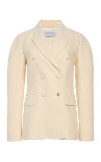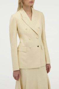 Silk tweed lends subtle structure to the double-breasted Sedna Blazer. Fitted at the waist, with rounded, sculptural sleeves, it introduces a new silhouette proposition within Gabriela Hearst’s language of tailoring. Details: - 100% Silk - Double-breasted - Dual Lapels - Rosegold button detail - Dual flap pockets - Fully lined - Made in Italy