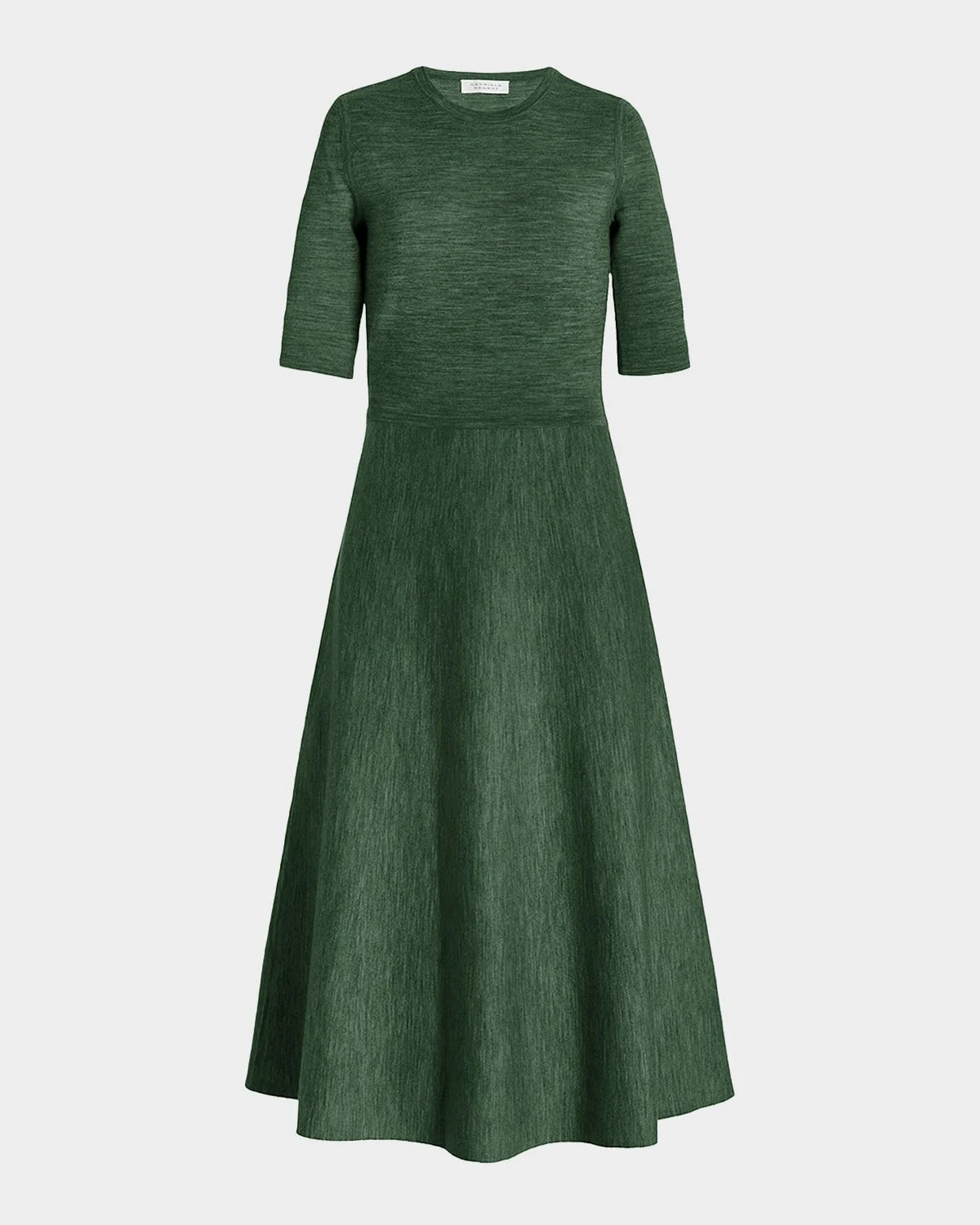 Designed in a flattering A-line silhouette, this Gabriela Hearst "Seymore" midi dress is crafted in a luxurious & nbsp;heathered wool-cashmere knit Crew neckline Elbow sleeves Hem falls below the knee A-line silhouette Pullover style Wool/cashmere/silk Professional cleaning recommended Imported