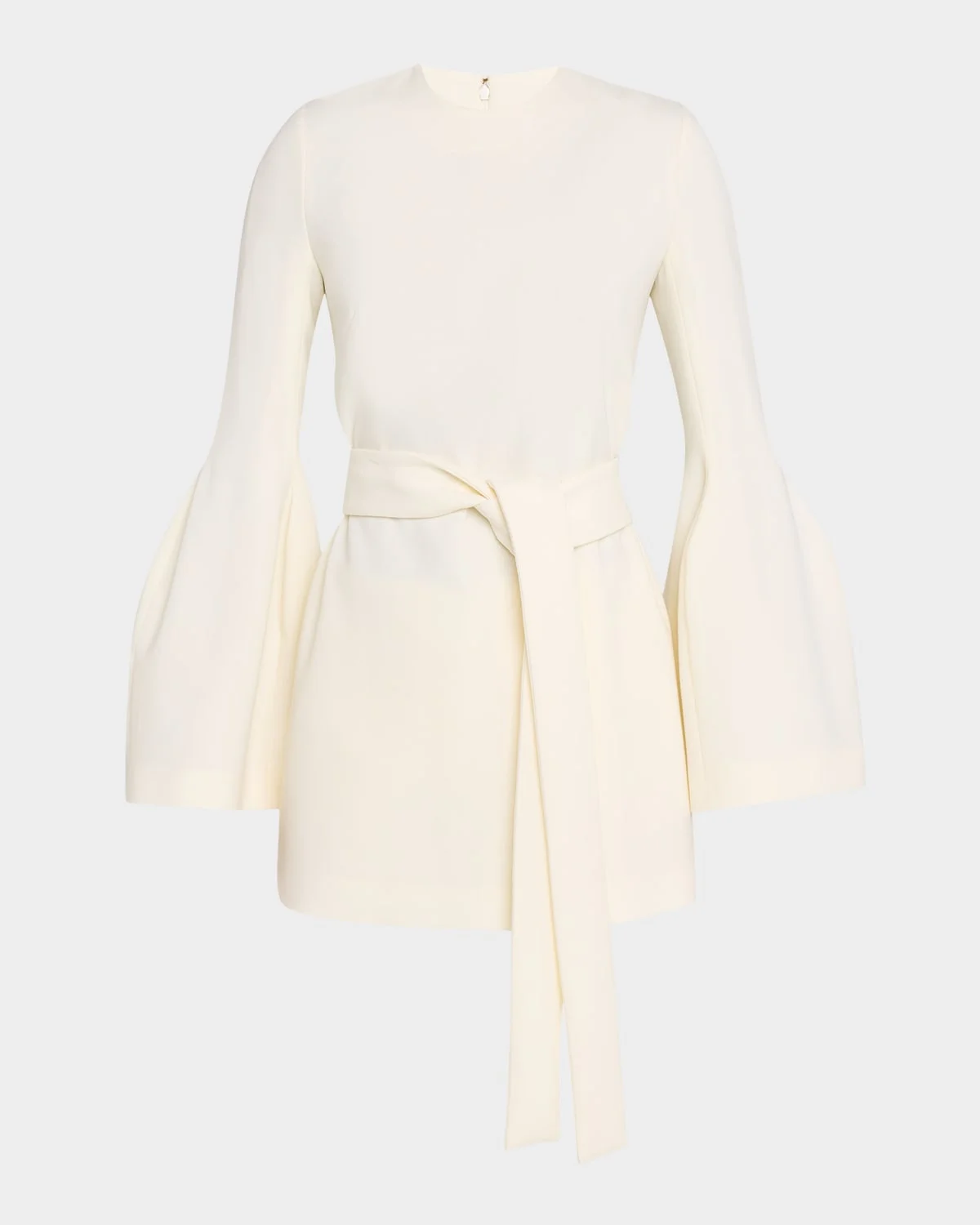 The "Shandon" tunic by Gabriela Hearst is knit from virgin wool and framed with voluminous sleeves Crew neckline Long flared sleeves Selftie sash belt Relaxed fit Longline silhouette Invisible back zipper Virgin wool Professional cleaning recommended Made in Italy