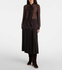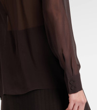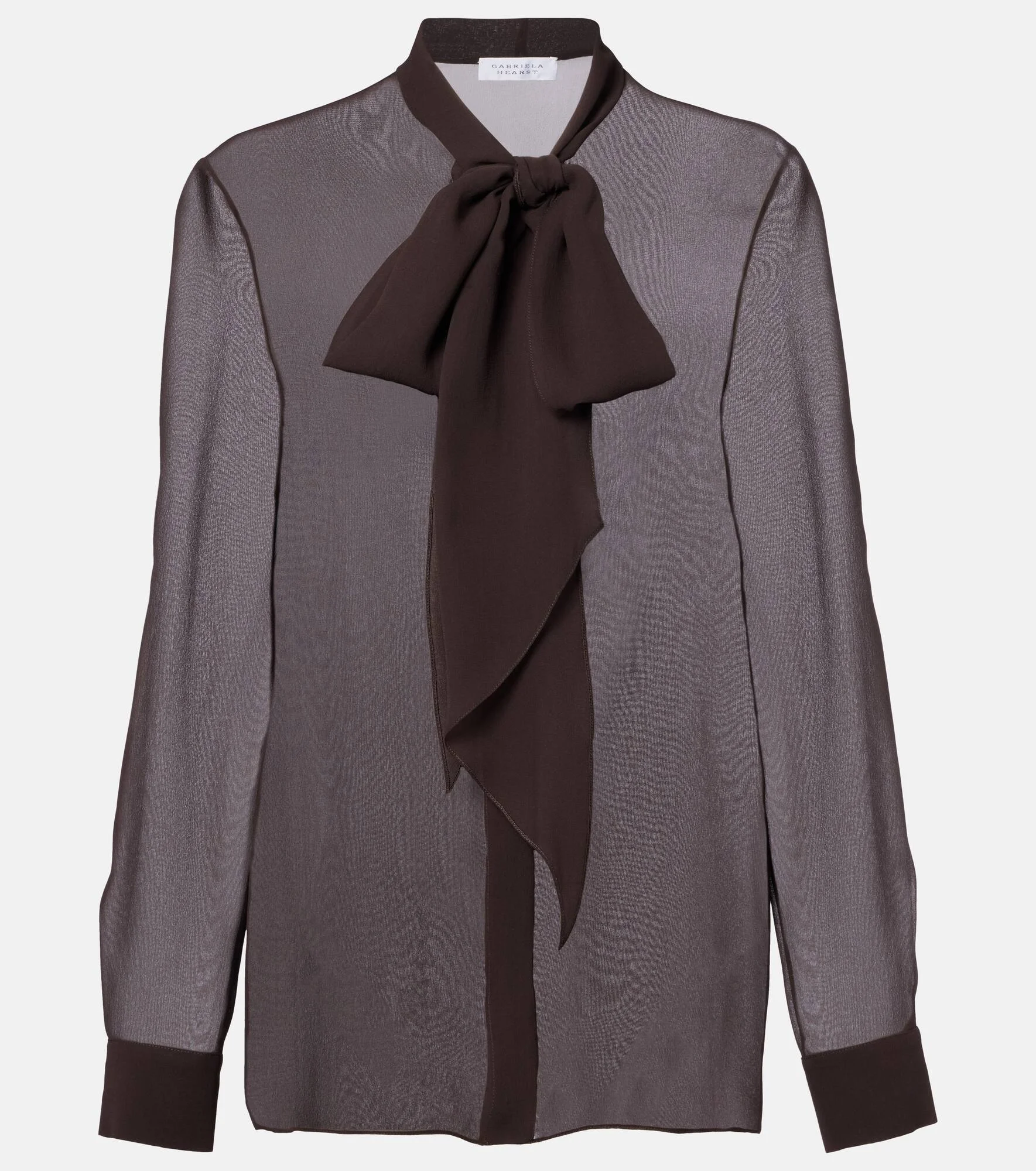 Gabriela Hearst's designs are all carefully constructed, showcasing an uncompromising dedication to quality and craft. The Shildon blouse is crafted from silk with a tie-neck detail. Product Details - Material: 100% silk - Care instructions: dry clean - Made in Italy - Designer color name: Chocolate - Item color: brown - Self-tie collar - Cuff: two buttons - Closure: buttoned placket - Item number: P01085854 Size & Fit - True to size - Sheer - Straight fit - Non-stretchy fabric - Falls to the hip - Height of model is 177cm-69.5" and wears a size IT 40