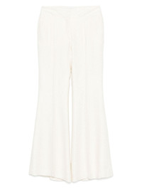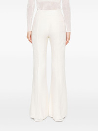 silk flared trousers Highlights - White - Hook and zip fly fastening - Slip pockets to the sides - Rear patch pocket Made in Italy Composition Lining: Viscose 96%, Elastane 4% Outer: Silk 100% SIZE & FIT Model measurements Height 5 ft 9 in(1.75 m) Bust/Chest 32.67 in(83 cm) Hips 36.22 in(92 cm) Waist 24.8 in(63 cm) FittingInformation Designed with a flared hem, these trousers allow for a close fit at the waist with a slim fit over the leg and widening towards the hem Made from a midweight fabric Washing instructions Dry Clean Only