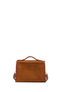 The Small Leonora Flap Bag is a satchel style with utilitarian leather binding, top-handle, removable and tuckable cross-body strap functionality in leather. All Leonoras features an outside open pocket, credit card slots, interior pocket and back pocket slip. Details: - 100% Goat suede exterior - 100% Nappa leather interior - Turnlock closure - Front interior pocket - Two credit card slots - Outside exterior pocket - Detachable 23.5 crossbody strap - Non-detachable top handle strap - Length: 2.5" | 63.5 mm - Height: 6" | 152 mm - Width: 9" | 229 mm - Fits any iPhone size - Made in Italy