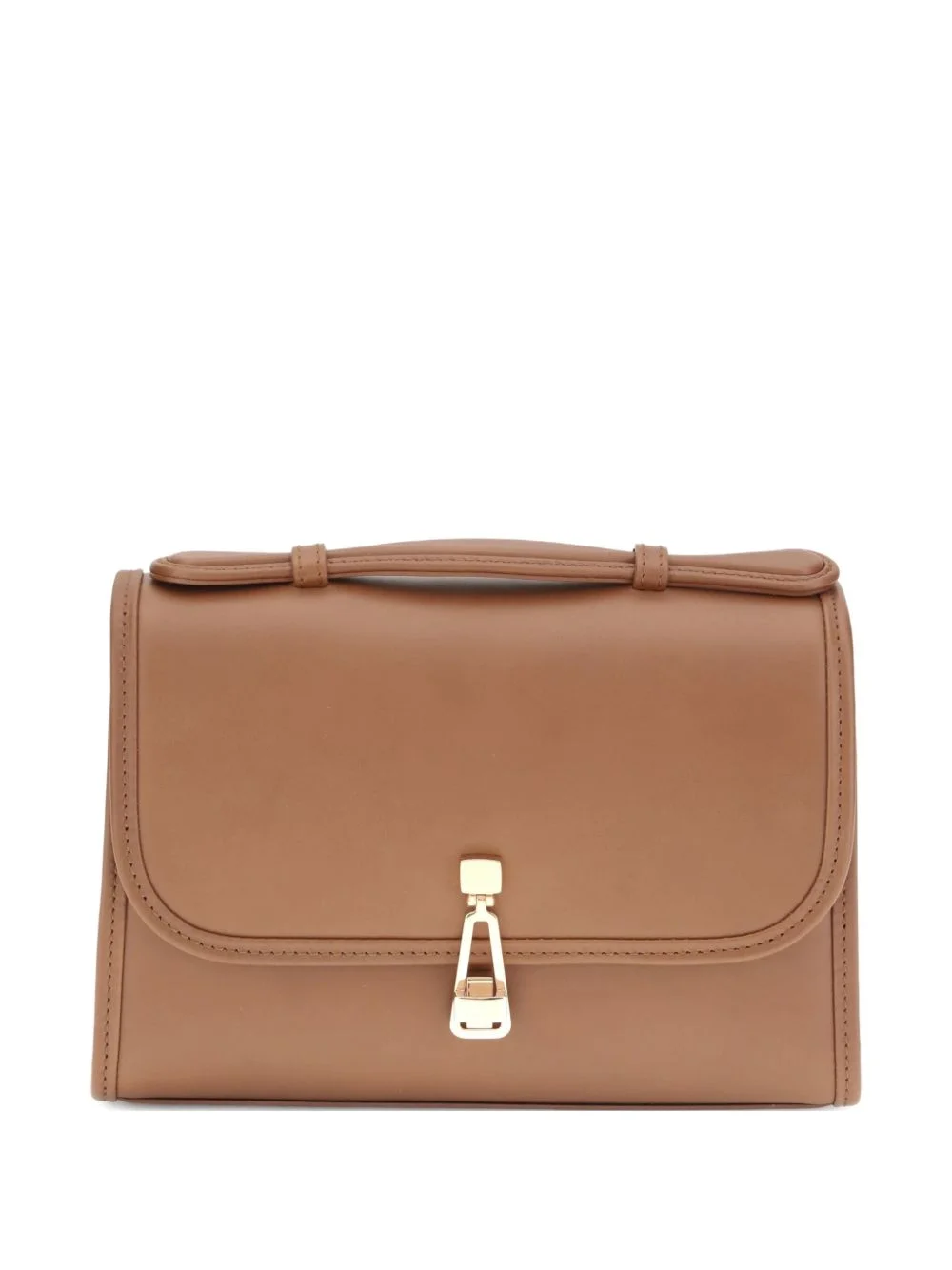 small Leonora top-handle clasp bag Highlights - Light brown - Calf leather - Top handle - Clasp fastening - Subtle stitching detail - Detachable adjustable shoulder strap Made in Italy Composition Outer: Calf Leather 100% Lining: Nappa Leather 100% SIZE & FIT Measurement DEPTH 2.51 in(6.4 cm) HEIGHT 5.98 in(15.2 cm) WIDTH 9.05 in(23 cm)