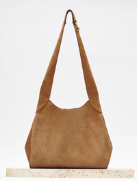 The new Hobo Bag Crafted is calf suede with a sculptural silhouette, this hobo bag blends relaxed form with architectural precision. The wide strap is shaped for comfort, while the interior, lined in soft suede, offers ample room. Finished with a discreet magnetic closure and our signature rose gold hardware. Details: - 100% Calf suede - Hobo silhouette - Turnlock strap closure - Shoulder strap - Open top with magnetic closure - One compartment without pockets - Lining: Suede - Fits a laptop - Made in Italy In the interest of maintaining our brand values of sustainability, the Small Hobo Bag in Dark Sand Suede is produced in limited quantities and is available by special order only. To order your bag, please complete the following form and click the “Inquire” button. You will be notified when your item becomes available. For any inquiries please contact us at customercare@gabrielahearst.com or call +1 212 966 2484 Monday through Friday, 9:00 AM to 6:00 PM EST