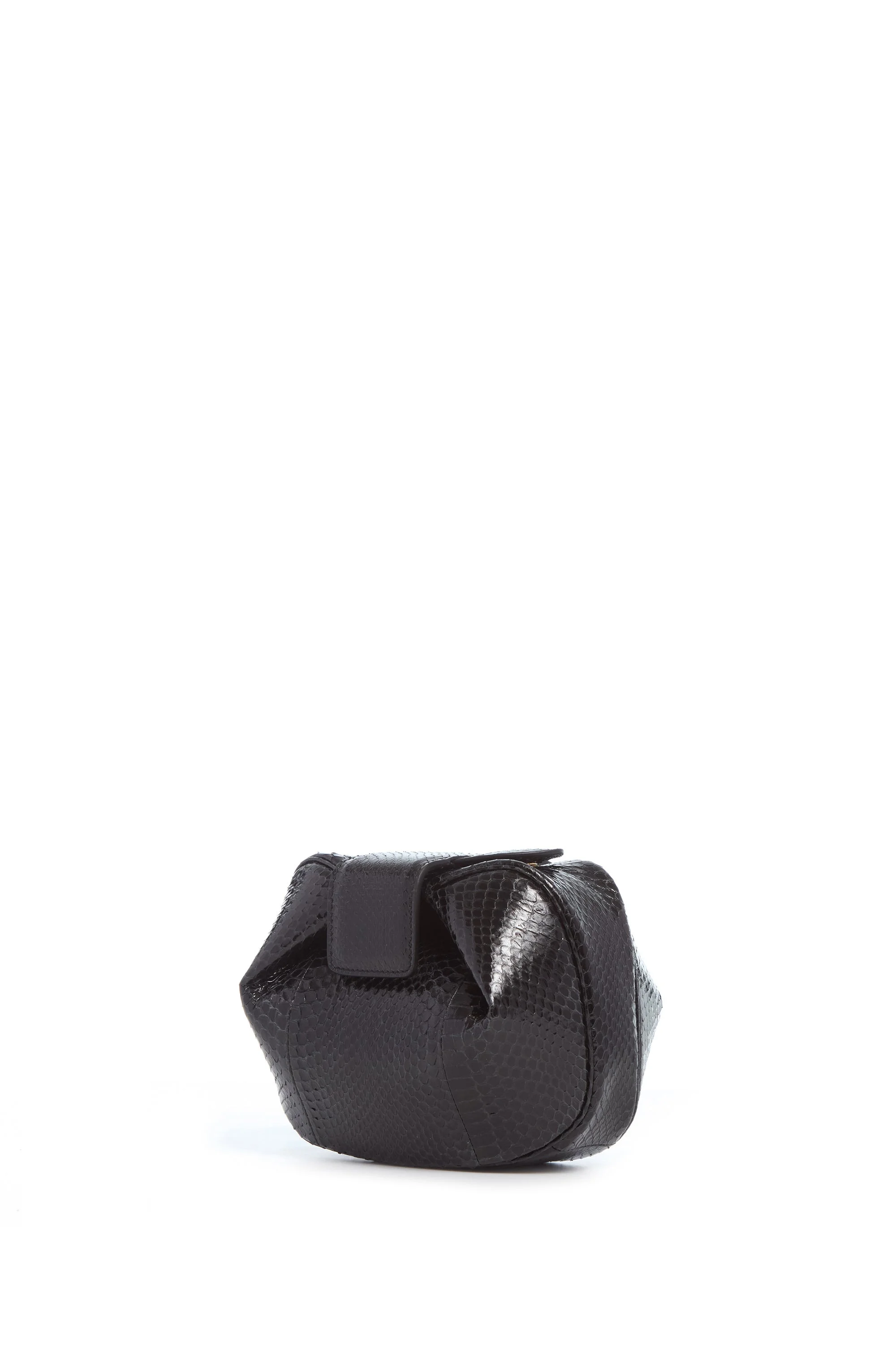 The Soft Demi Clutch is a version of the Demi Bag without a handle. A supple handheld bag with a distinctive round pouch that gently unfolds. The Soft Demi Clutch is crafted from finest snakeskin. Details: - 100% Elphae Snakeskin - 100% Lamb leather lining - Magnetic closure - One credit card slot - Fits iPhone Pro Max - Length: 7.75" - Height: 5.5” - Width: 5” - Made in Italy In the interest of maintaining our brand values of sustainability, this item is produced in limited quantities but available to shop online.